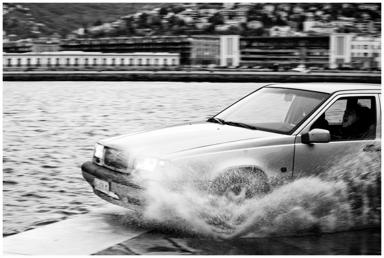 vista la quantità d'acqua che riesce ad alzare la ruota in quel determinato posto del molo, che non mi sembra poi cosi inregolare, mi fa credere che sia un'abile sovraposizione di due scene, se cosi non fosse...ti sei trovato davanti un momento candid unico, che spero sia andato tutto a buon fine (per lo sfortunato autista almeno)  |