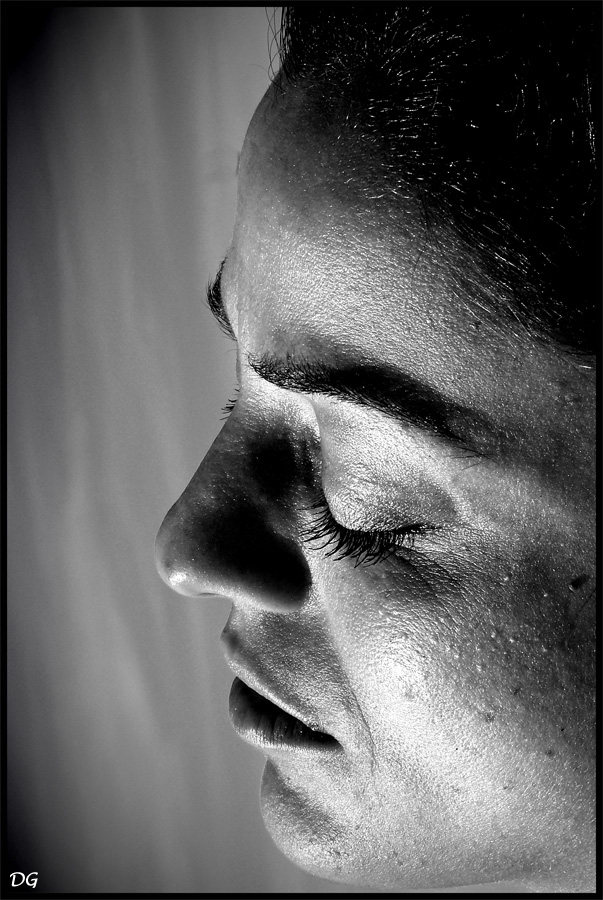 Però avrei preferito un soggetto maschile, magari con una barbetta incolta: al posto di Orsola, non vorrei minimamente che tu postassi una mia foto così in un forum... per forza di cose, la pelle richiede delle correzioni che in un taglio simile e con una luce così, è meglio non eseguire, perché è bello anche vedere delle piccole imperfezioni.