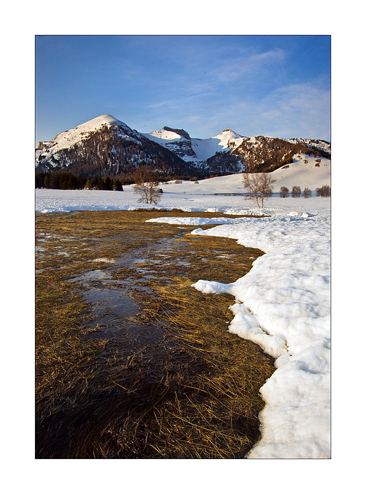 bella l'idea di usare il margine tra neve ed erba come linea di fuga......