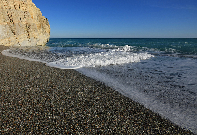 Grande rigore nella composizione (il pelo nell'uovo è rappresentato dal taglio un pelo stretto sulla schiuma a sinistra), nitidezza al top, cromatismo ineccepibile (di pregio il contrasto di toni fra cielo e roccia).