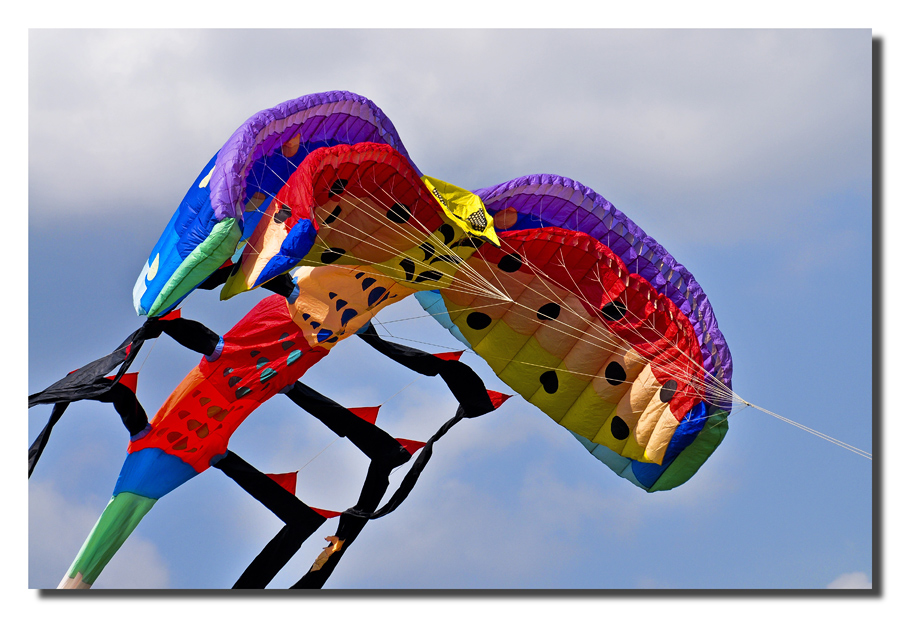 Davvero una luce ideale per questi mega aquiloni che mette in risalto la nitidezza e la vivacità dei loro colori. Colori e forme che certo non avranno mancato di far meravigliare i tanti "piccoli" che erano spettatori dell'evento ma sicuramente anche i più "grandi".
