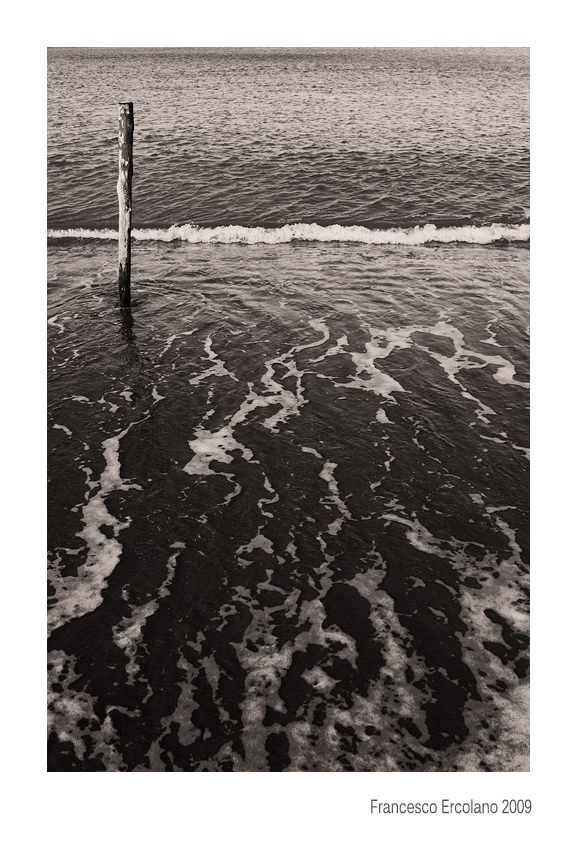 e questo schiumare solitario sulla riva, in allungo sul pp e con quel cielo invisibile e vuoto..... ha fascino e fa storia a sé.
