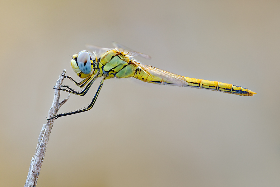 | A parte confermare ciò che ti è stato già detto, e cioè che il soggetto è stato ben ripreso e lo sfondo uniforme è perfetto, vorrei che mi togliessi una curiosità: l'orientamento di questa immagine è quello "reale"? Cioè questa bestiola si appoggia al rametto mentre con le ali si tiene su? |