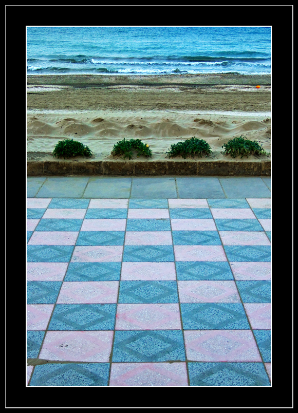 In effetti il mio intento era quello del richiamo del mare con il colore del pavimento.Ho notato una certa simmetria tra le linee e i colori e mi è scappato lo scatto.