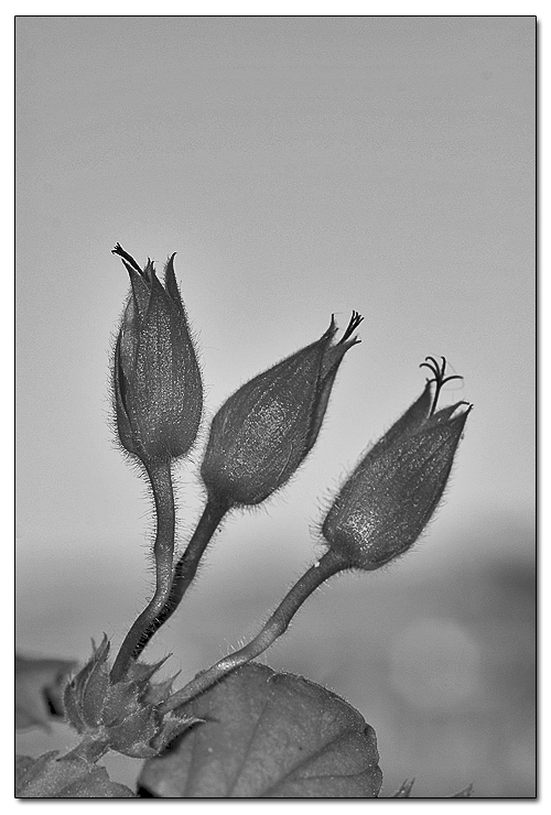 La scelta del B&W non mi fa impazzire....buono lo sfocato e l'infiorescenza che esce dall'angolo....mi piace meno la foglia tagliata!