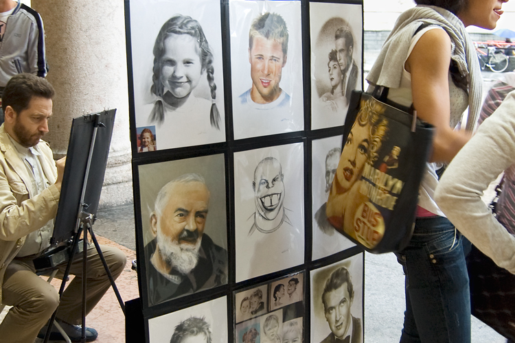Che combinazione l'immagine di Marylin sulla borsa che fà da contralto alle tue caricature.