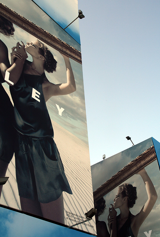 Facendo anch'io spesso foto con i cartelloni pubblicitari, ritengo che non sia stata semplice l'inquadratura per inserirli entrambi conferendo una certa dinamicità alla immagine. Mi piace.