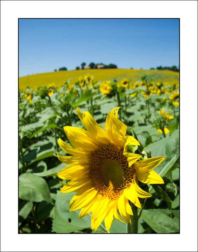 | Ciao infatti in cima non c'è una casa...ma un altra collina che si sovrappone a quella con i girasoli. In effetti a prima vista può sembrare una casa.