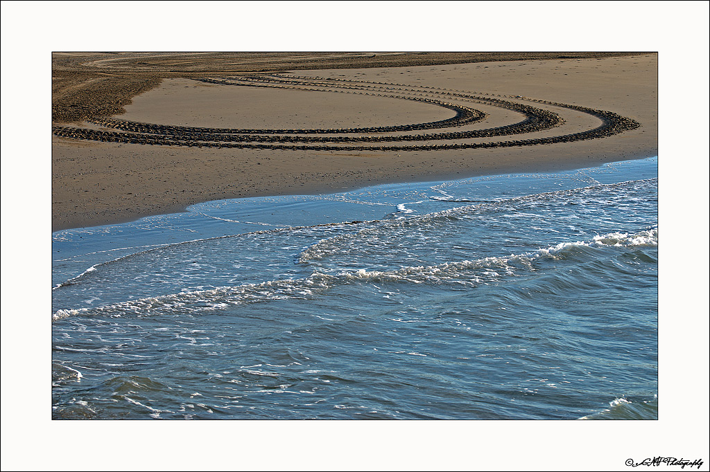 Molto bella, composizione pulita, bellissima luce che valorizza i solchi sulla spiaggia e bel colpo d'occhio.