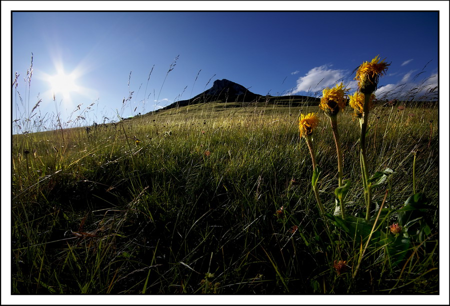 Fiori,monte e sole concertano in armonia la bella atmosfera.