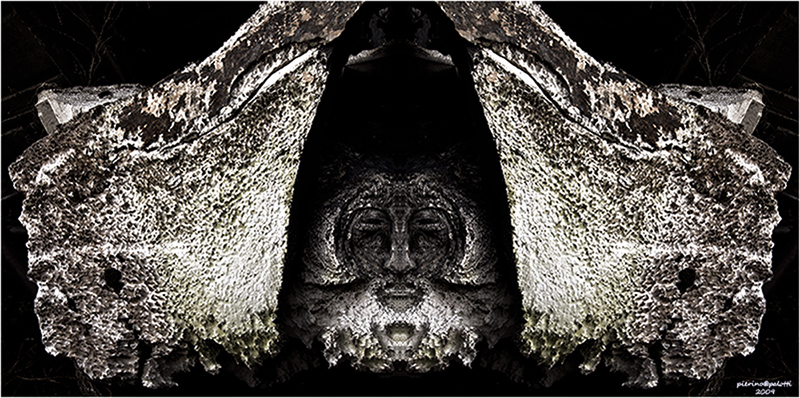 Anche questa immagine ottenuta in maniera simmetrica rispetto alla verticale ha un effetto di tutto rispetto.. un volto di un guerriero tra due elementi decorativi, forse il tessuto di una ampia tunica, forse gli strascichi di un mantello sollevato dal vento..