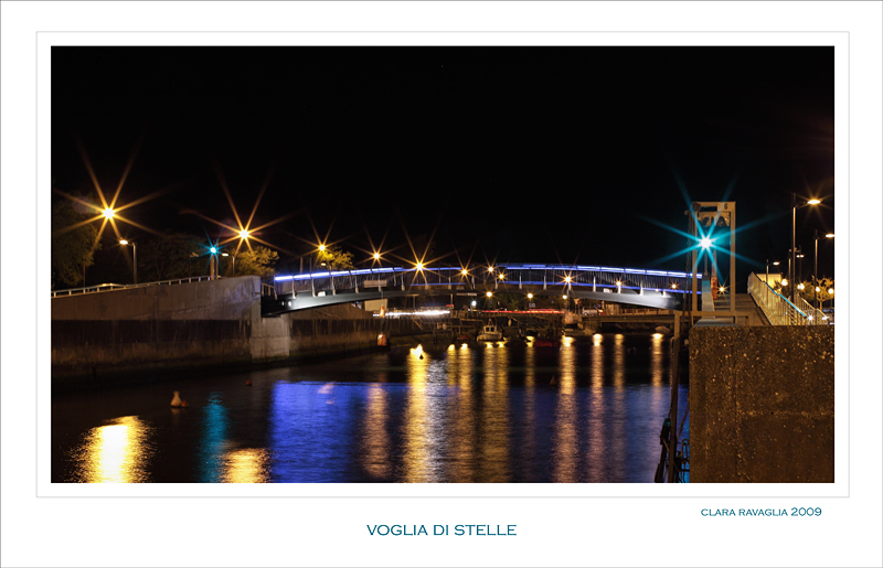 e sì.. stavolta ce l'ho fatto a catturare le luci come volevo. Per i due lampioni a destra, capisco la tua idea, ma se li avessi esclusi avrei eliminato anche la bella doppia passatoia che porta a questo nuovissimo ponte mobile, di Casal Borsetti di Ravenna, appena inaugurato e di cui gli abitanti vanno ora orgogliosi. E le due ministelline sul fondo corrimano sparivano.... Wink
