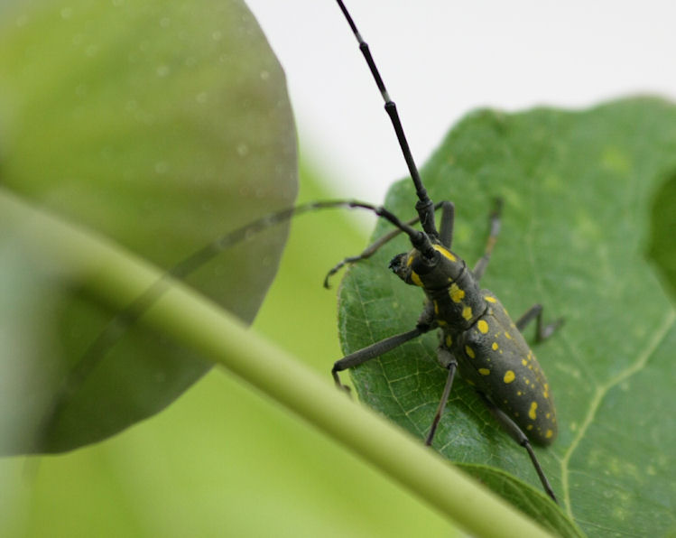 lo sfocato in primo piano disturba un po' e la scelta del fondo bianco/grigino non la apprezzo molto. il soggetto è abbastanza nitido, ma manca un po' di saturazione. Le antenne non si tagliano (fa male!).