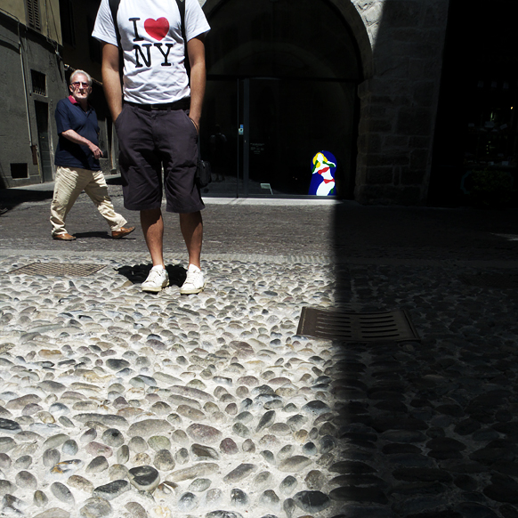 Andrea: l'idea è quella del voyeur...l'adesivo sulla vetrina è la sagoma di una serratura con all'interno una donna, la testa del soggetto in primo piano non c'è perchè è colui che guarda...che quindi può anche essere identificato con l'osservatore dell'immagine stesso...in pratica siamo tutti un pò voyeur, anche l'omino che ci sta guardando...si lo so, forse è più n giochino mio... Ops