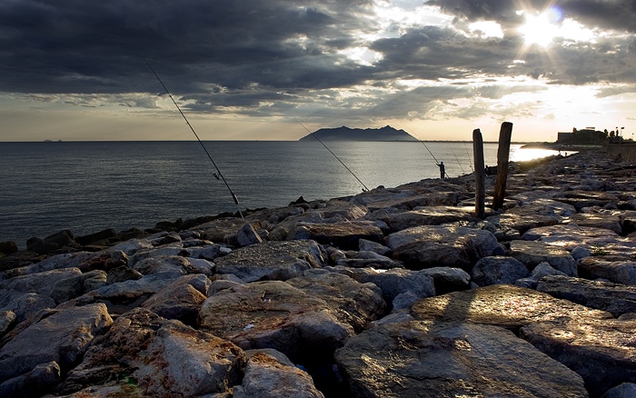 Ottima la gestione delle luci, vista e considerata la posizione del sole. Avrei solo ruotato di 1° CCW la foto, perchè la vicinanza del Circeo fa sì che l'orizzonte sia leggerissimamente pendente a dx.