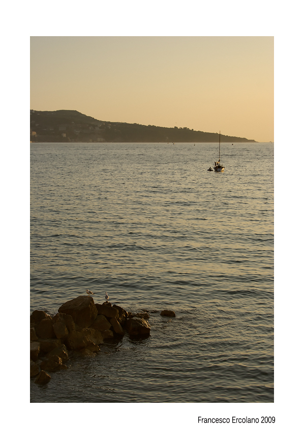 Un sussurro leggero,nell'ora più bella,ingentilito dalla luce accennata che dagli scogli si diffonde sui volatili.