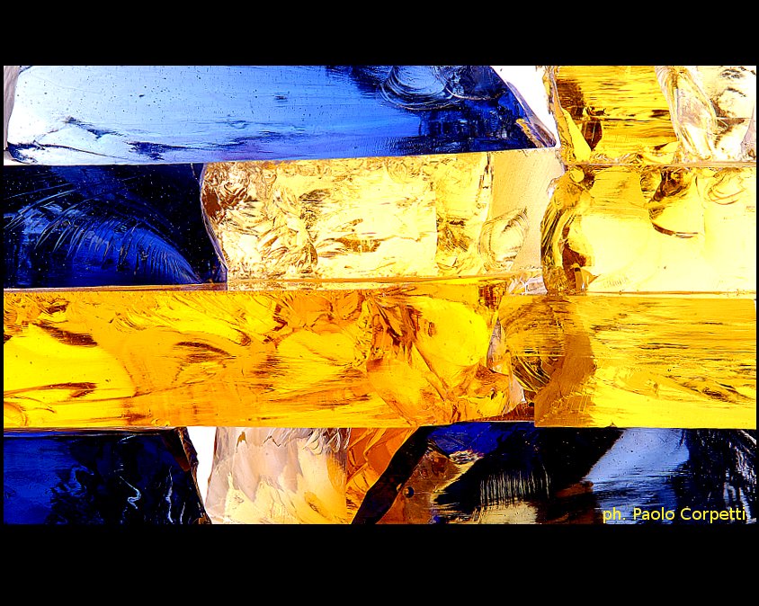 Blocchi di ghiaccio azzurro-blu che danno energia a strie fluorescenti come fossero colate d'oro fuso, si incastrano perfettamente tra loro, creando un connubio fisico e cromatico geniale.