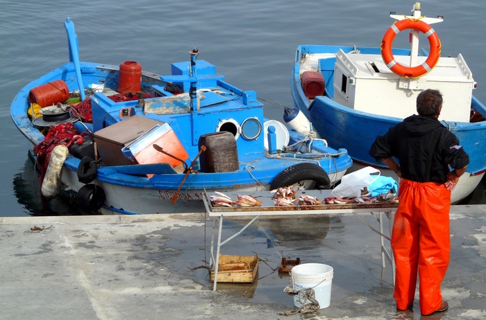 Una scena dove l'uomo e l'ambiente sono entrambi presenti: qui il contesto ci spiega bene il lavoro di quest'uomo e la sua vita. Quindi uno scatto life a tutti gli effetti ma che trasmette delle deboli emozioni. Il pescatore è ripreso di spalle, relegato ai margini del fotogramma e guarda fuori campo: tutto questo non aiuta la lettura dello scatto. Il peschereccio sulla destra del fotogramma poteva essere ripreso per intero, senza tagli. Mi chiedo che cosa avrei fatto io in questo caso: sarei sceso giù, ad ammirare quel favoloso pesce fresco ed avrei voluto conoscere il nome di quel pescatore.....forse poteva nascere qualche scatto life più intrigante ed anche qualche street-scene