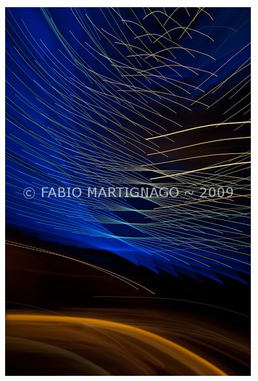 Mi sembra uno studio sul movimento e sulle strisce di luce che lo stesso lascia sul sensore della macchina fotografica. IL disegno grafico che ne scaturisce ha la sua parte di astrazione e non è male da vedersi, se non fosse per il copyright così invasivo che rompe l'armonia d'insieme del colpo d'occhio globale.