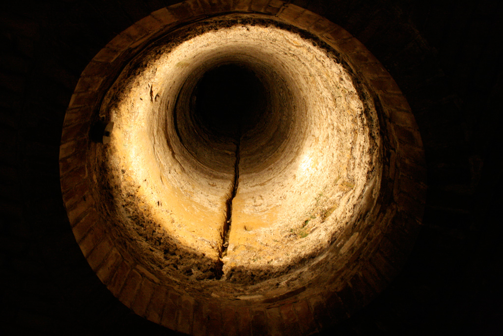 Ma il taglio in basso del bordo dell'apertura, e in alto, non sono elementi positivi nella composizione.. che forse avrebbe avuto massima valorizzazione cercando di tenere il centro perfetto del pozzo, per dare modo allo sguardo di scorrere esattamente fino in fondo, dando a tutta la struttura la stessa importanza..  |