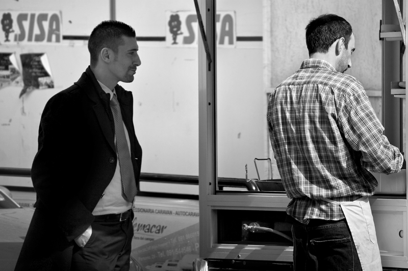 Ma guarda peppe.bommarito si nota l'aria direi compiaciuta del tizio a sx e l'altro che presumibilmente sta preparando qualcosa da gustare ma in verità l'azione si presume, non si capisce in realtà cosa stia facendo se non in termini molto generali e questo è un difetto a mio parere di un certo peso, avrei cercato di scattare proprio dall'altra parte prendendoli davanti e con l'azione ben chiara; tecnicamente hai gestito bene mi sembra la differenza di luce ed il bn mi sembra buono così la nitidezza.