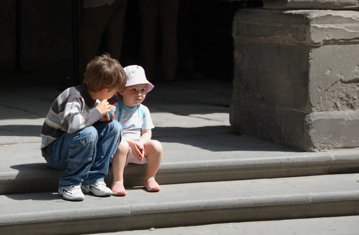 oltretutto la scena, vista dal vivo, era davvero simpatica: i due piccolini erano usciti dela coda chilometrica per entrare agli Uffizi di Firenze (quelli sono i gradini laterali della piazza!