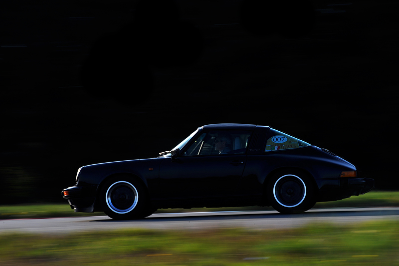 cercavo il panning sul profilo inconfondibile della porsche 911, al tramonto, mezzo controluce, auto nera su sfondo in ombra. una foto abbastanza difficile del cui risultato mi sono sincerato soltanto una volta scaricata