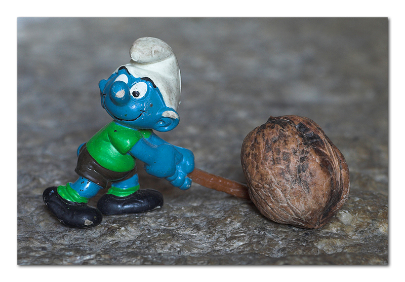 E' incredibile cosa si possa fare con 5 puffi e una noce. Stavo per consigliare dei fumetti, ma le immagini parlano (com'è giusto) da sole.