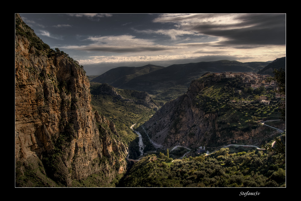 la strada che sembra persino continuare con il fiume e la pdc data portano ad un'immagine in effetto 3D dove non si riesce a scorgere (ma solo immaginare) la fine della valle scavata dalle acque
