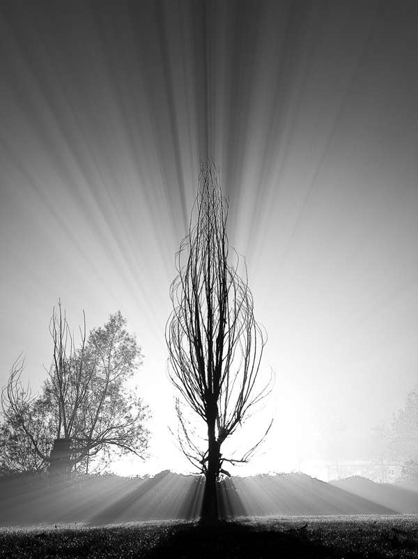 bellissime entrambe le versioni, merito dei raggi, della splendida silhouette dell'albero e della tua post.