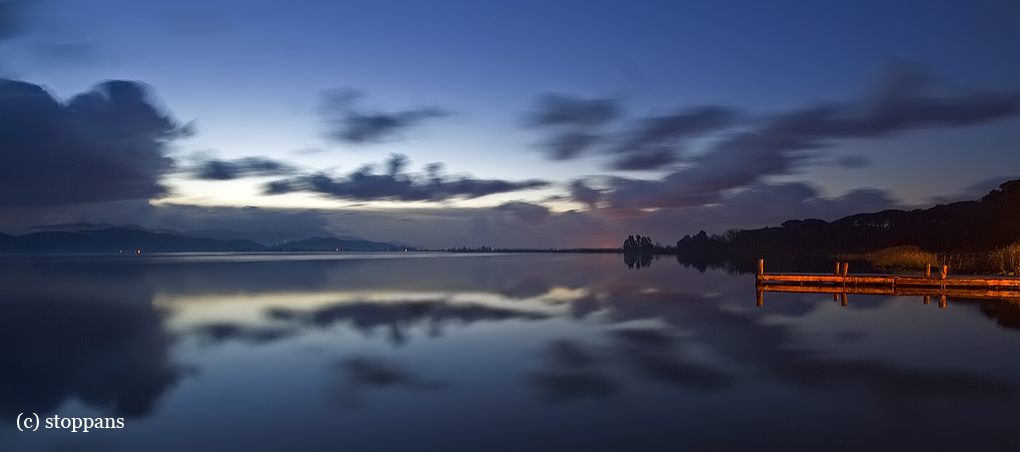 da un lato la staticità del pontile e della riva, dall'altro il movimento inarrestabile delle nuvole e rispettivo riflesso...