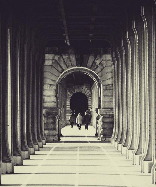 Un fotogramma molto elegante dove la composizione fotografica premia prevalentemente la componente architettonica del paesaggio urbano: le geometrie sapientemente composte incorniciano questo lungo porticato conducendo l'osservatore dentro la profondità del fotogramma alla ricerca della componente umana: le persone sono riprese di spalle durante una passeggiata fra queste suggestive colonne, rappresentanedo più un elemento compositivo che altro. Non ritrovo una valenza street propriamente detta, mancando un momento più o meno unico. Resta sicuramente un ottimo fotogramma. I grafismi architettonici sono resi bene dalla scelta tecnica del bianco e nero che purtroppo soffre di una gamma tonale troppo larga: ti consiglio di ottimizzarla per ritrovare i punti di bianco e di nero.