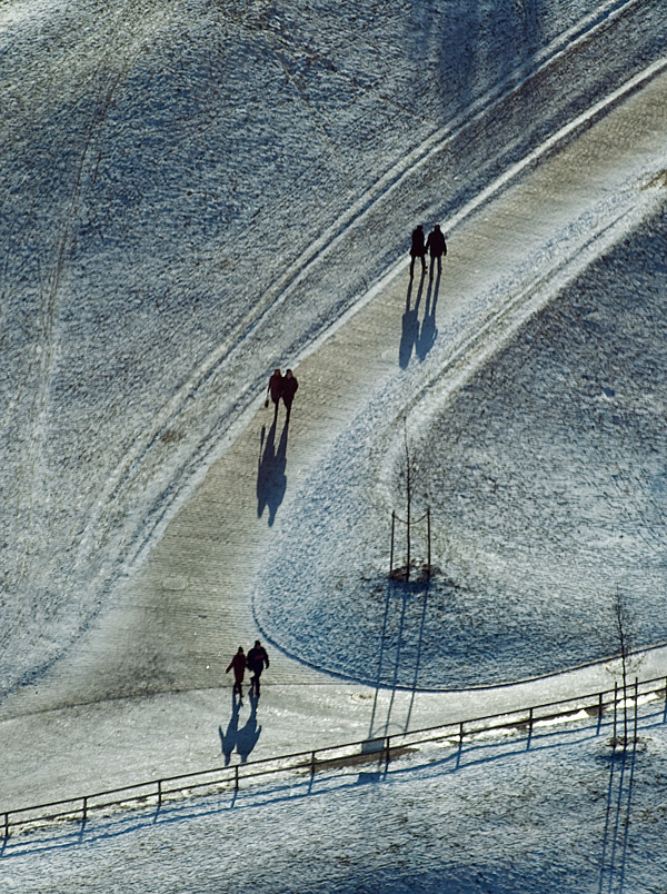 L'impianto e l'impatto visivosuggerisce per contro una sensazione di dinamismo pacato e una certa espressione di ritmica allegrezza. La vedo molto positiva più che pesantemente negativa.E le ombre così normali da vedersi in una ripresa dall'alto non legittimano reconditi pensieri, ma una conseguenza normale prospettica della luce.