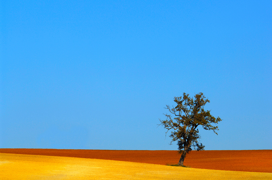 minimale, ben composta.colpisce la dobbia banda del terreno con tonalità ocra diverse