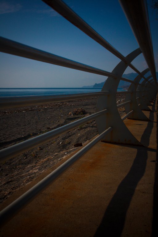 in effetti è sottoesposta ma quello che mi preme dirti è che: io solitamente (e sicuramente sbagliando.... ) considero la vignettatura come una specie di chiusura oppure, all'opposto, come un modo per dare un continuo alla scena ripresa....qui...in questa tua....non c'è bisogno di far capire al visitatore che vi è un proseguo dietro le spalle perchè il tutto è già segnato dalle razze di questa insolita passerella...