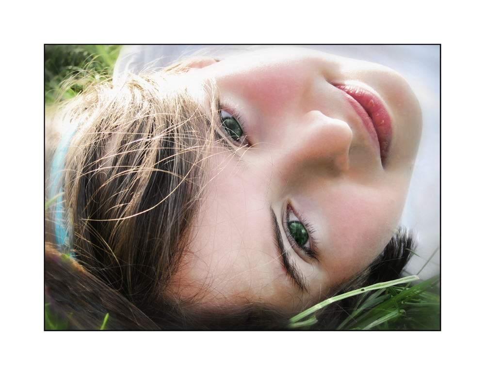 Non so se apprezzare o meno l'originalità della posa della modella e la posizione dello scatto. in ogni caso hai saputo rendere molto bene gli occhi verdi (naturali o ritoccati in PS?). Bravo