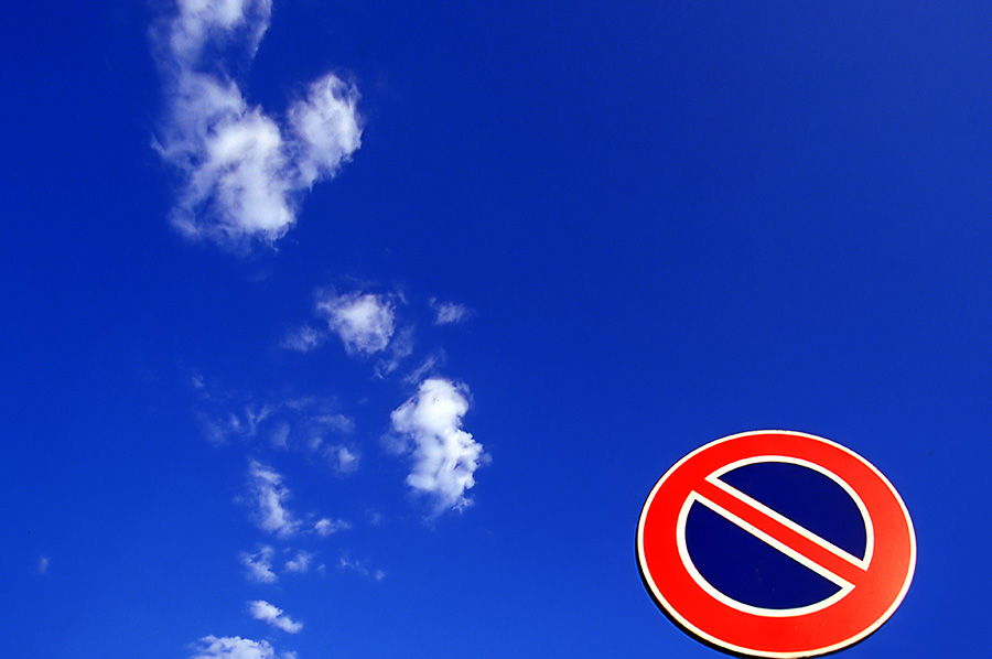 Diapo Fuji Sensia,Eos 5, 18mm , Cielo Blu, Segnale di Divieto di Sosta.Pazzia Incipiente