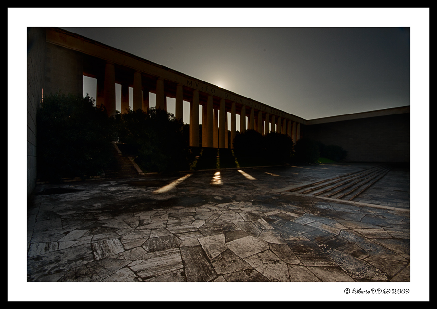 | Buono il taglio e il punto di ripresa. La componente fondamentale dello scatto in termini di resa positiva è però a mio avviso da considerarsi la luce che dona allo scatto, complice un cielo molto particolare come intonazione di colore dovuto immagino al controluce, un accento misterioso e ci proietta nel passato delle civiltà romane trascorse. Importanti per l'esito anche quelle lame di luce riflesse sulla pavimentazione e provenienti dalle colonne irradiate dal sole. Ciao Tiziano |