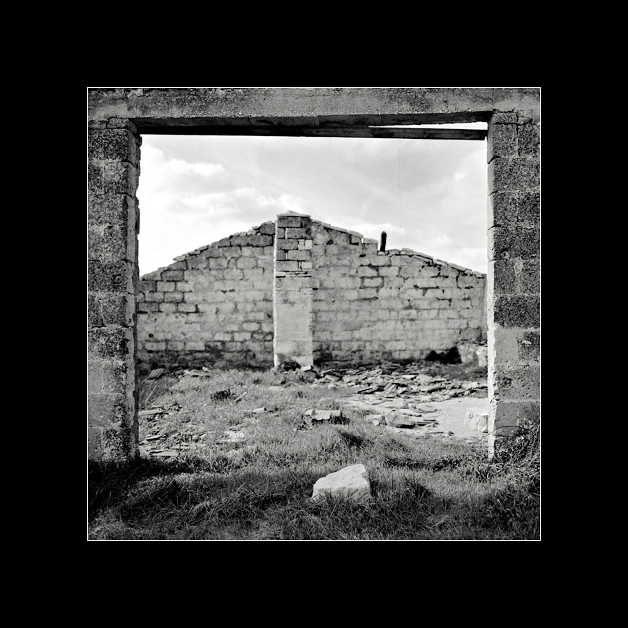 Molto interessanti la compo e il b/n per i miei gusti..., l'apertura fa da buona cornice al muro e al cielo e la pietra in pp è un buon piede di partenza al quadro..., la cornice però mi appare esagerata e quasi superflua visto il riquadro naturale..., al limite la stringerei un bel po.