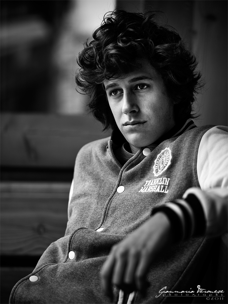 E' una bella foto, con qualche accorgimento attento: la zona di luce a sinistra della capigliatura, per di più con la medesima forma e la schiarita dello sfondo sulla destra che stacca i riccioli da uno sfondo altrimenti troppo scuro. Una bella e naturale luce sul volto. Il percorso del rever del giubbotto che armonizza sia con la postura che con l' inquadratura e che offre un aggancio allo sguardo. La postura nel suo complesso che disegna una evidente curva molto armonica in sé ed armonicamente inserita nel quadro.