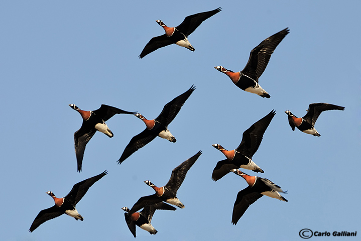 bellissima questa immagine di oche collorosso in volo... hai fatto troppo bene a postarla perchè a me piace tantissimo così in formazione! avrei solo clonato via quella macchia di polvere sul sensore, la foto, come tutte le tue, lo meritava! Ok!
