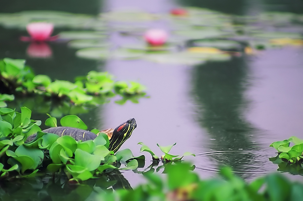 molto bella e ben composta,ottimi i colori e bello anche il richiamo cromatico tra la testa della tartaruga ed i fiori acquatici sullo sfondo...bravo! Smile