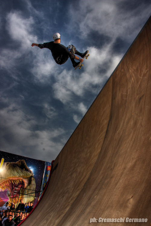 Il punto di ripresa pare abbia aiutato per una composizione corretta...lasciando in un angolo il pubblico, in alto l'atleta e dando molto spazio alla rampa ed al cielo di sfondo...