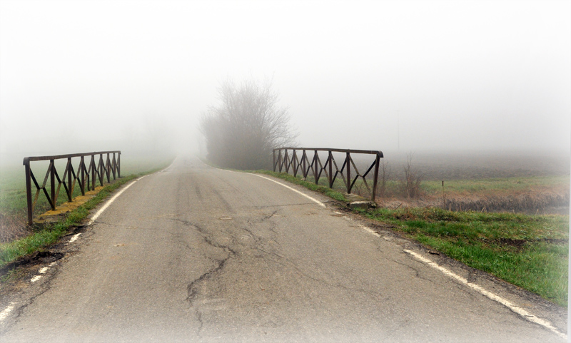 ciao Massimo, grazie!! Un' immagine "semplice".. Una strada che si perde nella nebbia, il silenzio ovattato dalla foschia, l 'odore umido della pianura..i pochi colori di una primavera in ritardo, che cercano di farsi largo in un cielo monocromatico.. .Semplicemente la Mia Terra, che ha qualcosa da regalare in tutte le stagioni..anche in quelle del silenzio e dell'introspezione