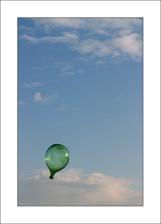 Mi piace la contrapposizione dei due piani di nuvole e l'aspirazione della piccola damigiana a librarsi verso cieli più alti.