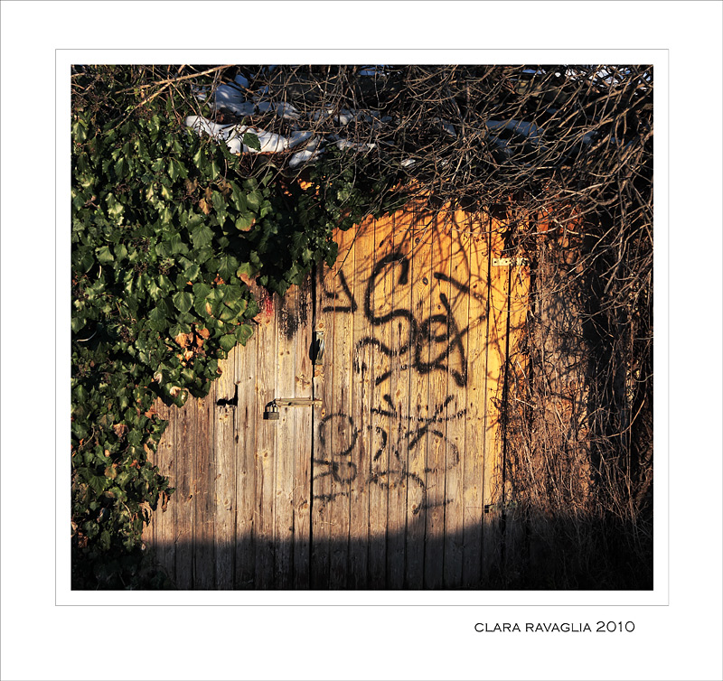 tecnicamente l'idea della cornice naturale è interessante. edera e rami secchi ai lati, in basso la linea d'ombra ed in alto pure uno spruzzo di neve...