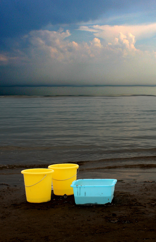 | mi piace, mi piace la grande semplicità e il confronto tra un grande spazio, il mare e il cielo, e la piccola porzione di spiaggia con i secchi.