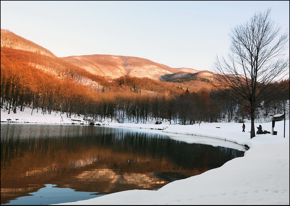 Ciao Mosaico..., mi piace molto la compo e anche i colori un po ruggine che danno un po la sensazione di una vecchia foto..., ma guardando lo specchio d'acqua, ho come l'impressione che penda a destra..., non so, boh!