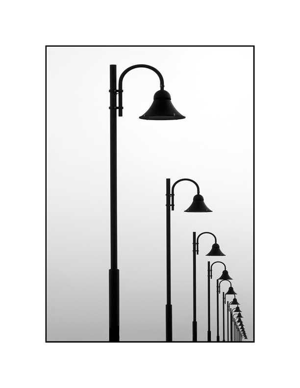 Lo scatto si presenta piacevole alla vista. Queste reiterazioni di elementi urbani come i lampioni quasi sempre hanno una buona riuscita.