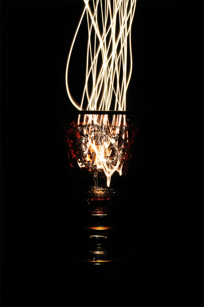 Mi piace moltissimo questa idea e anche la realizzazione. L'unica cosa che non mi piace è il fatto che la scia di luce sembra uscire (o entrare ) nel bicchiere, tranne che per quel centimetro di luce in basso, questo piccolo particolare secondo me da un po' fastidio. E forse avrei fatto in modo che fossero un po' più netti i contorni del bicchiere. Per il resto  |